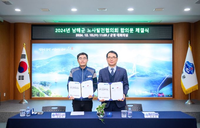 [경남도민뉴스=김부경 기자] 남해군과 전국공무원노동조합 남해군지부가 원만한 노사관계 발전을 위한 합의문을 체결했다.
