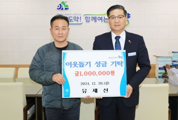 진병영 함양군수는 “뜻깊은 성금을 기탁해주신 유재신 대표님께 깊은 감사를 드린다”라며, “소중한 성금이 어려운 이웃들에게 잘 전달될 수 있게 하겠다”라고 감사의 뜻을 밝혔다.