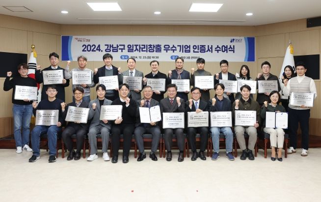 [경남도민뉴스=김완호 기자] 꿈이 모이는 도시, 미래를 그리는 강남구가 관내 일자리 창출에 기여한 우수기업 20개사를 선정하고 23일 인증서와 현판을 수여했다.