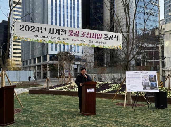 [경남도민뉴스=김완호 기자] 마포구는 공덕역 늘장부지(염리동 169-2 일대)에 사계절 꽃길을 조성하고 12월 23일 준공식을 개최했다.