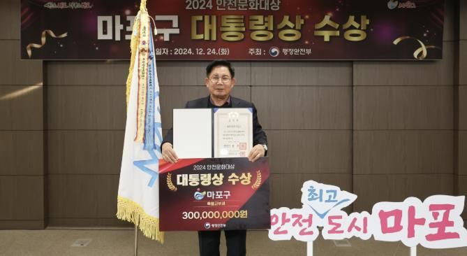 [경남도민뉴스=김완호 기자] 마포구는 행정안전부에서 주최한 2024 안전문화대상에서 전국 지방자지단체 1위에 해당하는 대통령 표창을 수상하고 특별교부세 3억 원을 확보했다.