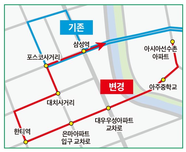 이로써 잠실을 통과해 삼성동에서 회차하던 3411번 버스가 아시아선수촌아파트, 아주중학교 등 잠실7동을 거쳐 대치동 전역을 누비게 됐다.