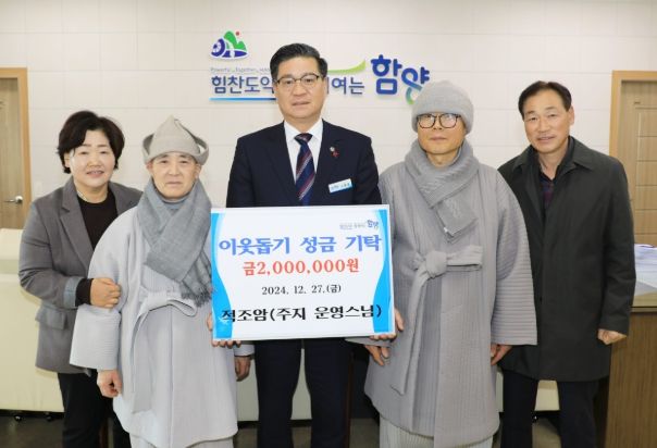 [경남도민뉴스=장광동 기자] 함양군 휴천면에 위치한 적조암의 주지 운영스님이 27일 함양군청을 방문하여 지역의 어려운 이웃을 돕기 위해 성금 200만 원을 기탁했다.