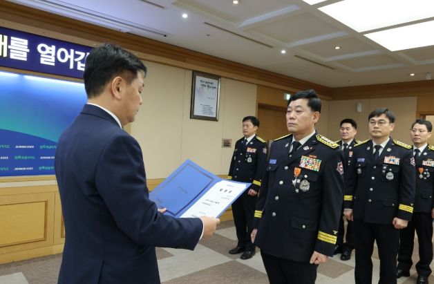 [경남도민뉴스=최인태 기자] 전북특별자치도는 2025년 새해를 맞아 도민의 안전 강화를 위한 강한 의지를 담아 2일 오전 9시 30분, 도청 4층 지사실에서 소방공무원 소방서장급 승진자와 전보자에 대한 임명장 수여식을 개최했다.