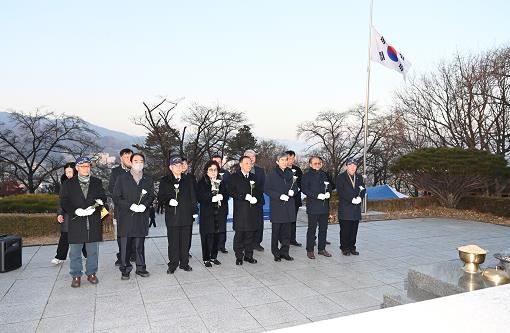 이날 행사에는 최순고 김천시장 권한대행을 비롯한 간부 공무원들과 보훈단체 회장들이 참석했으며, 헌화, 분향, 묵념을 통해 순국선열과 호국영령들의 숭고한 희생정신을 기리고 새해를 맞아 김천시의 안녕과 번영을 기원했다.