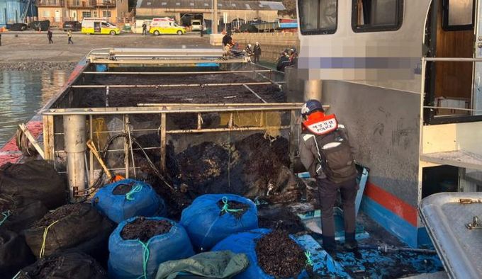 이후 인근 어선들의 협조로 불길을 잡고 연기가 나는 상태로 예인되어 수품항으로 입항 중, 갑판에 적재 해놓은 김이 기관실로 내려앉아 완전 진화 된 것으로 전해졌다.
