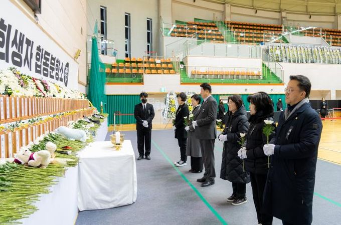 이호귀 의장·김광심·이향숙·윤석민·손민기·노애자 의원은 헌화를 하고 난 뒤, 묵념으로 희생자들을 애도했다. 이어 무안공항 수습 현장을 방문해 희생자들의 명복을 비는 시간을 가졌다.