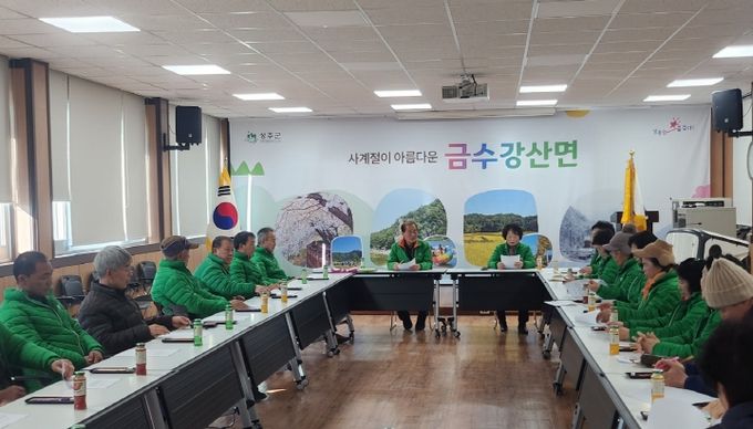 조형철 금수강산면장은 “새마을회의 무궁한 발전을 기원하며, 을사년 새해에도 깨끗한 금수강산 만들기에 힘써주기를 당부드리며 새마을회와 함께 아름다운 금수강산면을 만들기 위해 소통과 협력을 이어 나가겠다”라고 밝혔다.