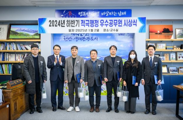[경남도민뉴스=김부경 기자] 남해군은 지난 2일 적극적으로 업무를 추진하여 성과를 창출한 공무원 6명을‘2024년 하반기 적극행정 우수공무원’으로 선정했다고 밝혔다.