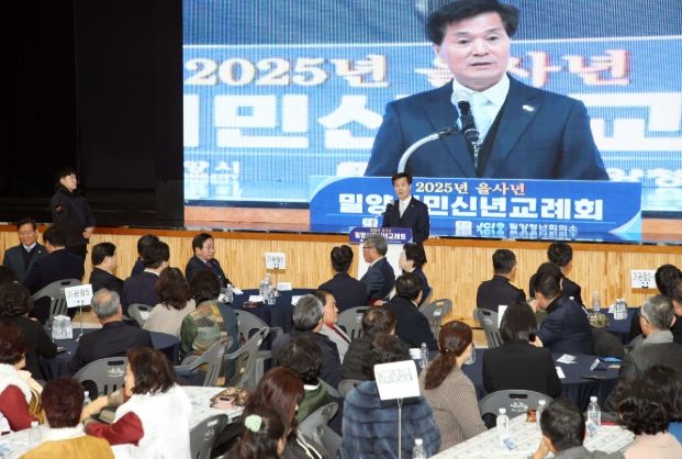 푸른 뱀의 해 을사년을 맞아 개최된 이번 신년교례회에는 안병구 밀양시장, 박상웅 국회의원, 허홍 밀양시의회 의장을 비롯한 각급 기관·단체장 등 500여 명이 참석했다.