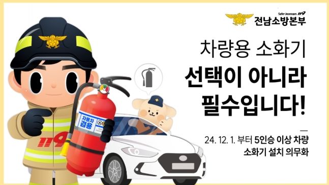 [경남도민뉴스=최인태 기자] 해남소방서는 2024년 12월 1일부터 시행되는 5인 이상 승용자동차에 대한 차량용 소화기 비치 의무화를 앞두고 주민들에게 이를 알리고 차량 화재에 대한 예방 의식을 높이기 위한 홍보 활동을 강화하고 있다.