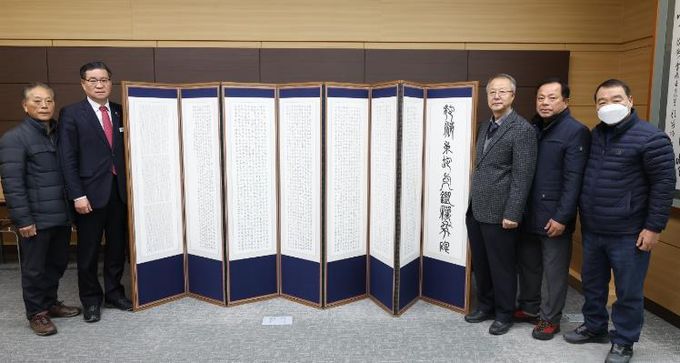 기증된 병풍은 고운 최치원 선생의 토황소격문 및 쌍계사 진감선사 대공탑비에 대한 설명문이 담겨 있다.