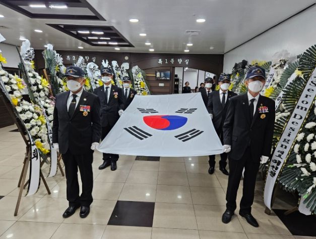 [경남도민뉴스=표재민 기자] 대한민국무공수훈자회철원군지회 장례의전선양단은 지난 9일, 철원군 한 장례식장에서 영면하신 6.25참전유공자(무공수훈자)에 대한 장례의전선양행사를 치뤘다.