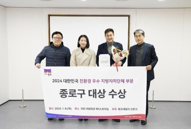 [경남도민뉴스=김완호 기자] 종로구가 에코데일리 주최 ‘2024 대한민국 친환경 우수 지방자치단체 및 우수의원 대상 컨퍼런스’에서 대상을 수상했다.