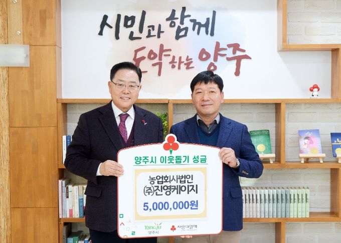 이번 전달식에는 강수현 양주시장과 나완주 대표가 참석했으며 성금은 경기 사회복지공동모금회를 통해 지역 내 어려운 이웃들에게 전달될 예정이다.