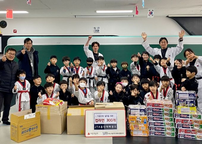 이번 컵라면 후원은 JTA용인대태권도 수련생들이 십시일반 정성을 모아 마련한 것으로, 태권도를 통한 체력 향상뿐 아니라 올바른 인성교육을 강조하며 나눔의 가치를 실천하기 위해 추진됐다.