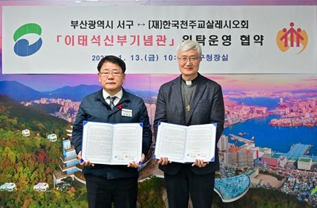 [경남도민뉴스=김채연 기자] 부산광역시 서구와 (재)한국천주교살레시오회(이사장 백광현)는 지난 13일, 이태석 신부의 참사랑의 의미와 숭고한 뜻을 기리기 위해 설립된 이태석신부기념관의 효율적 관리・운영 위한 이태석신부기념관 위・수탁운영 협약을 체결했다.