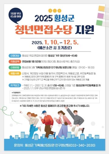 [경남도민뉴스=표재민 기자] 지역 청년들의 취업 준비를 돕고 구직활동을 장려하기 위해 횡성군이‘2025년 청년 면접수당 지원사업’을 시행한다.