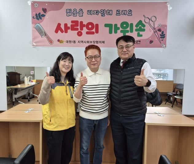 ‘사랑의 가위손’은 대원1동 지역사회보장협의체의 신규 특화사업으로 김해성 남성컷트헤어(대표 김해성)의 업무협약(재능기부)을 통해 관내 저소득가구 어르신 및 장애인가구 대상으로 매월 무료로 이·미용서비스를 제공하는 사업이다.