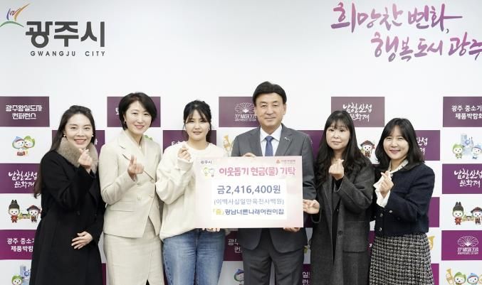 이와 함께 이날 광남너른나래어린이집에서 성금 242만 원을, 광주시 육아종합지원센터도 성금 104만 원을 각각 전달했다.
