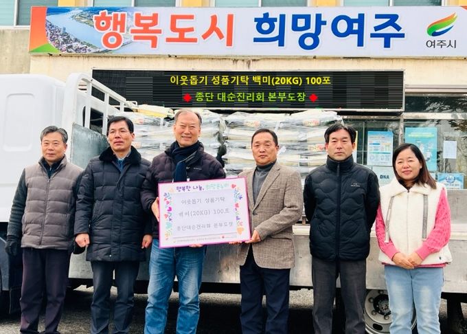 [경남도민뉴스=김미순 기자] 종단 대순진리회 여주본부도장(여주시 강천면 소재)는 지난 13일 다가오는 설 명절을 맞이하여 관내 소외계층을 위해 강천면에 여주쌀 20kg 100포를 기탁했다.