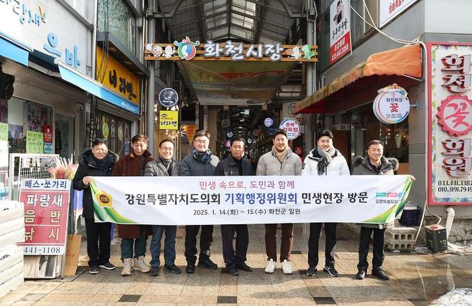 [경남도민뉴스=표재민 기자] 강원특별자치도의회 기획행정위원회는 1월 14일부터 15일까지 2일간 접경지역에 위치한 화천전통시장과 화천커뮤니티센터를 방문하여 지역경제 상황에 대한 점검과 함께 돌봄서비스 운영실태를 점검했다.