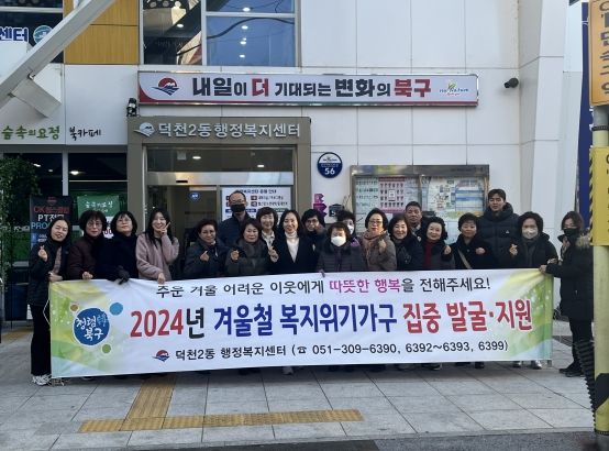 문옥희 덕천2동장은 “한파에도 취약계층 대상자가 건강하고 안전하게 겨울을 보낼 수 있도록 한파 예방수칙 홍보 및 위기가구 발굴과 지원에 최선을 다하겠다”고 말했다.