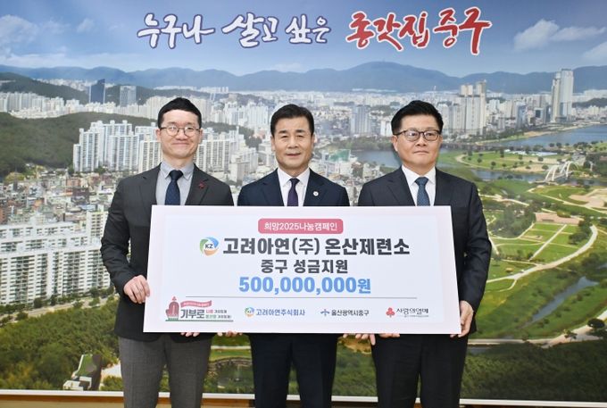 한편, 고려아연㈜는 지난 2016년부터 올해까지 10년째 매년 중구에 성금 5억 원을 기부하고 있다.