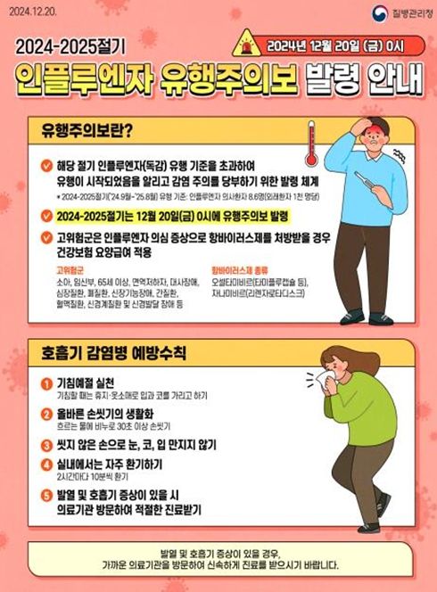 다가오는 설 연휴에는 대규모 이동과 함께 인플루엔자 등 호흡기 감염병 확산 위험이 높은 만큼, 65세 이상 고령자와 면역 저하자 등 고위험군은 빠른 시일 내에 예방접종을 완료해야 한다.
