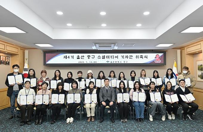 [경남도민뉴스=최재경 기자] 울산 중구가 지난 1월 14일 오후 6시 30분 중구청 중회의실에서 2025년 중구 소셜미디어 기자단 위촉식을 열었다.