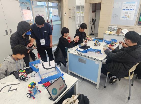 학생들은 헬로메이플, 마이크로비트, 네오쏘코, 햄스터봇 등 다양한 에듀테크 교구를 활용해 코딩의 과학적 원리를 이해하고 창의성을 키우고 있다. 특히 학생의 신청이 많아 부족한 네오쏘코 교구는 경기 SW·AI 교육지원센터에서 대여해 학생들의 학습 선택권을 보장하며, 프로그램의 원활한 운영을 지원하고 있다.