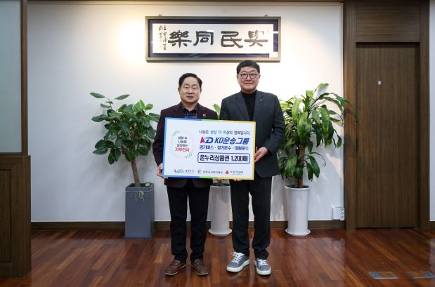 이날 KD운송그룹은 설날을 앞두고 지역의 취약계층을 지원하기 위해 온누리상품권 1,200매(1,200만 원 상당)를 남양주시 복지재단(대표이사 원병일)에 전달했다.