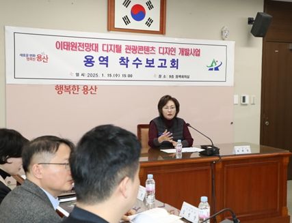 [경남도민뉴스=김완호 기자] 박희영 용산구청장이 15일 오후 3시 용산구청(녹사평대로 150) 9층 정책회의실에서 열린 ‘이태원전망대 디지털 관광콘텐츠 디자인 개발사업 착수보고회’에 참석했다.