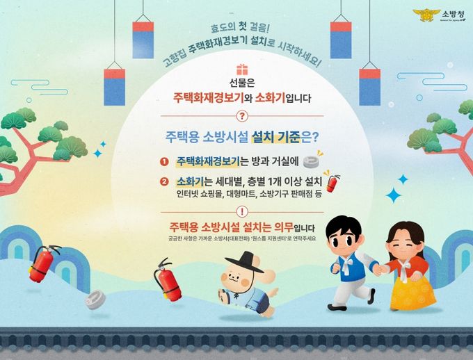 김종욱 소방서장은 “주택용 소방시설로 화재가 초기에 진화되어 인명과 재산피해를 막은 사례가 다수 있다”며 “이번 설에는 가족과 친지들에게 주택용 소방시설을 선물해 안전하고 행복한 설 명절을 보내시기 바란다”고 전했다.