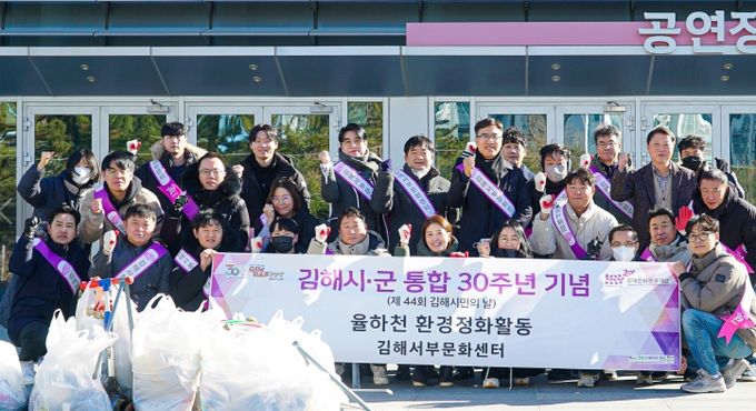 [경남도민뉴스=최미정 기자] (재)김해문화관광재단 김해서부문화센터 임직원들이 지난 1월 15일 장유3동 율하천 일대에서 율하천 주변 정비활동과 올해로 30주년을 맞는 김해시·군 통합 30주년을 홍보하는 활동을 펼쳤다.