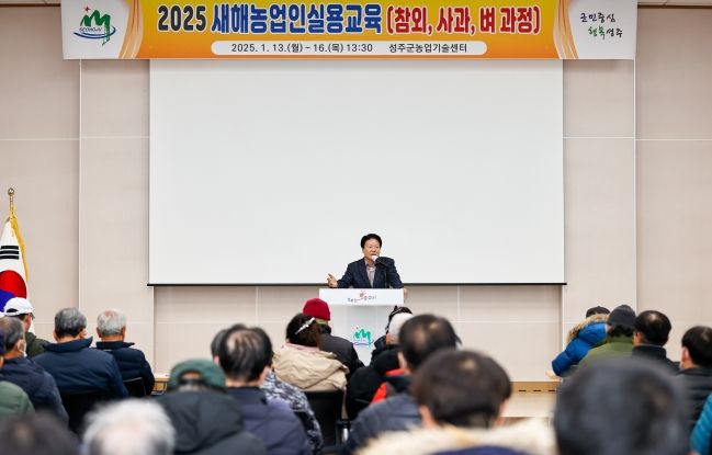 [경남도민뉴스=최민숙 기자] 성주군 농업기술센터는 2025년 새해 농업인 실용교육을 1월 13일부터 16일까지 농업기술센터 대강당에서 농업인 600여명이 참석한 가운데 기후변화 대응 고품질 참외, 사과, 벼 생산을 위한 재배기술교육을 실시했다.