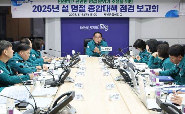 [경남도민뉴스=장광동 기자] 함양군은 지난 16일, 설 명절 연휴 기간 주민 불편 최소화와 민생 안정을 위한 종합대책 점검 보고회를 개최하며, 안전하고 편안한 명절 분위기 조성을 위한 철저한 준비에 나섰다.