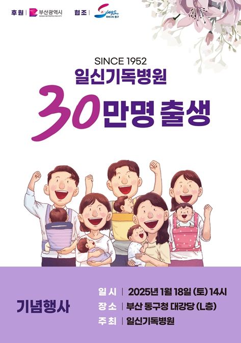 이번 행사에는 그간 일신기독병원에서 태어난 5만둥이, 10만둥이, 20만둥이, 25만둥이, 쌍둥이, 다둥이가족 등도 초청해 30만 명 출생을 함께 축하할 예정이다.