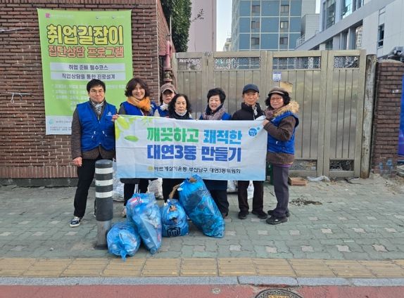 [경남도민뉴스=김채연 기자] 부산 남구 대연3동 바르게살기운동위원회가 설 명절을 맞아 1월 16일 지역 환경 정화 활동을 실시하며 따뜻한 마음을 나눴다.