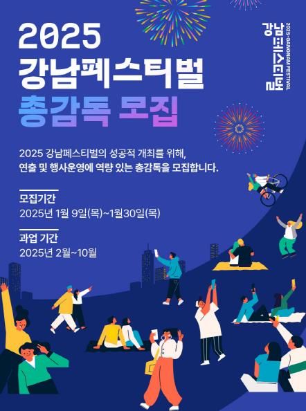 [경남도민뉴스=김완호 기자] 꿈이 모이는 도시, 미래를 그리는 강남구가 2025 강남페스티벌의 성공적인 개최를 위해 혁신적이고 차별화된 비전을 제시할 총감독을 공개 모집한다.