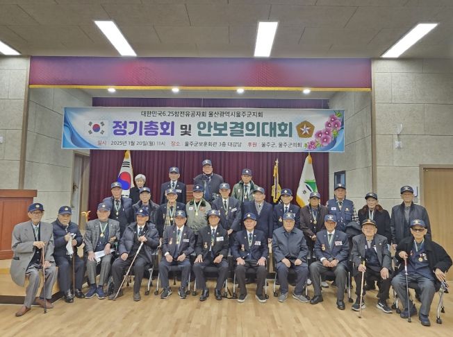 [경남도민뉴스=최재경 기자] 대한민국6.25참전유공자회 울산광역시울주군지회(회장 복인규)가 20일 울주군 보훈회관 대회의실에서 회원 60여명이 참석한 가운데 2025년도 정기총회 및 안보결의대회를 개최했다.