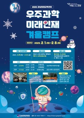 [경남도민뉴스=김완호 기자] 꿈이 모이는 도시, 미래를 그리는 강남구는 2월 20일부터 21일까지 강남미래교육센터(영동대로 22)와 송암스페이스센터(경기도 양주시)에서 ‘2025 우주과학 미래인재 겨울캠프’를 개최한다.