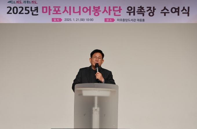 [경남도민뉴스=김완호 기자] 박강수 마포구청장은 1월 21일 오전 마포중앙도서관 마중홀에서 열린 ‘2025년 마포시니어봉사단 위촉장 수여식’에 참석했다.