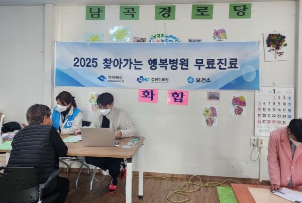 [경남도민뉴스=최민숙 기자] 김천시는 지난 16일과 21일 양일간 지역사회와 연계하여 ‘건강마을’ 중 하나인 감문면 남곡리 마을회관에서 지역주민 40여 명을 대상으로 진료 및 연계 교육을 진행했다.