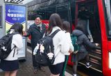 도성훈 인천시교육감, 새학기 '학생성공버스' 등교 학생 격려