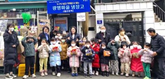 이날 원아들이 직접 마을공유냉장고에 라면을 넣어 나눔을 실천하는 문화를 체험했고 이웃을 존중하고 배려하는 시간을 가졌다.