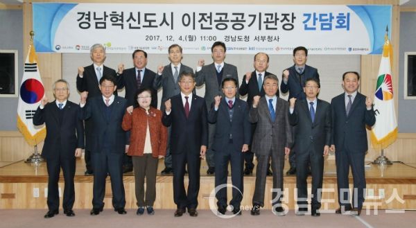 (경남도/이형섭 기자) = 경남도는 4일 오전 11시 한경호 도지사 권한대행과 11개 경남혁신도시 이전공공기관장, 진주시장이 참석한 가운데 ‘경남혁신도시 이전공공기관장 간담회’를 개최했다.