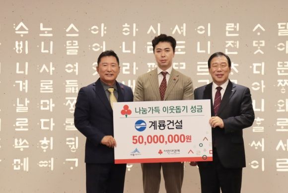 계룡건설 주식회사는 오태식 사장이 참석하여 희망2025나눔캠페인 성금 5천만원을 전달했다.