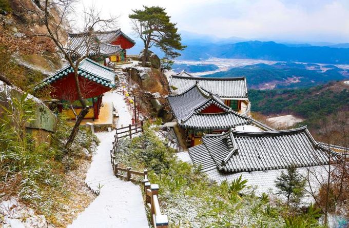 [경남도민뉴스=김태수 기자] 7일 오전 산청군 신등면 정취암에 흰 눈이 살포시 내려앉아 고즈넉한 늦겨울 정취를 자아내고 있다.