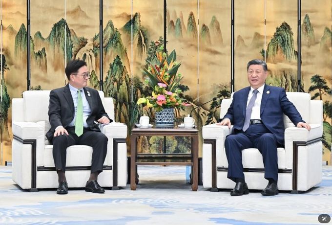[경남도민뉴스=백형찬 기자] (중국 하얼빈=신화통신) 시진핑(習近平) 중국 국가주석이 7일 오후(현지시간) 헤이룽장(黑龍江)성 하얼빈(哈爾濱) 타이양다오(太陽島) 호텔에서 '제9회 동계 아시안게임' 개막식 참석차 중국을 방문한 우원식 한국 국회의장과 회견했다.